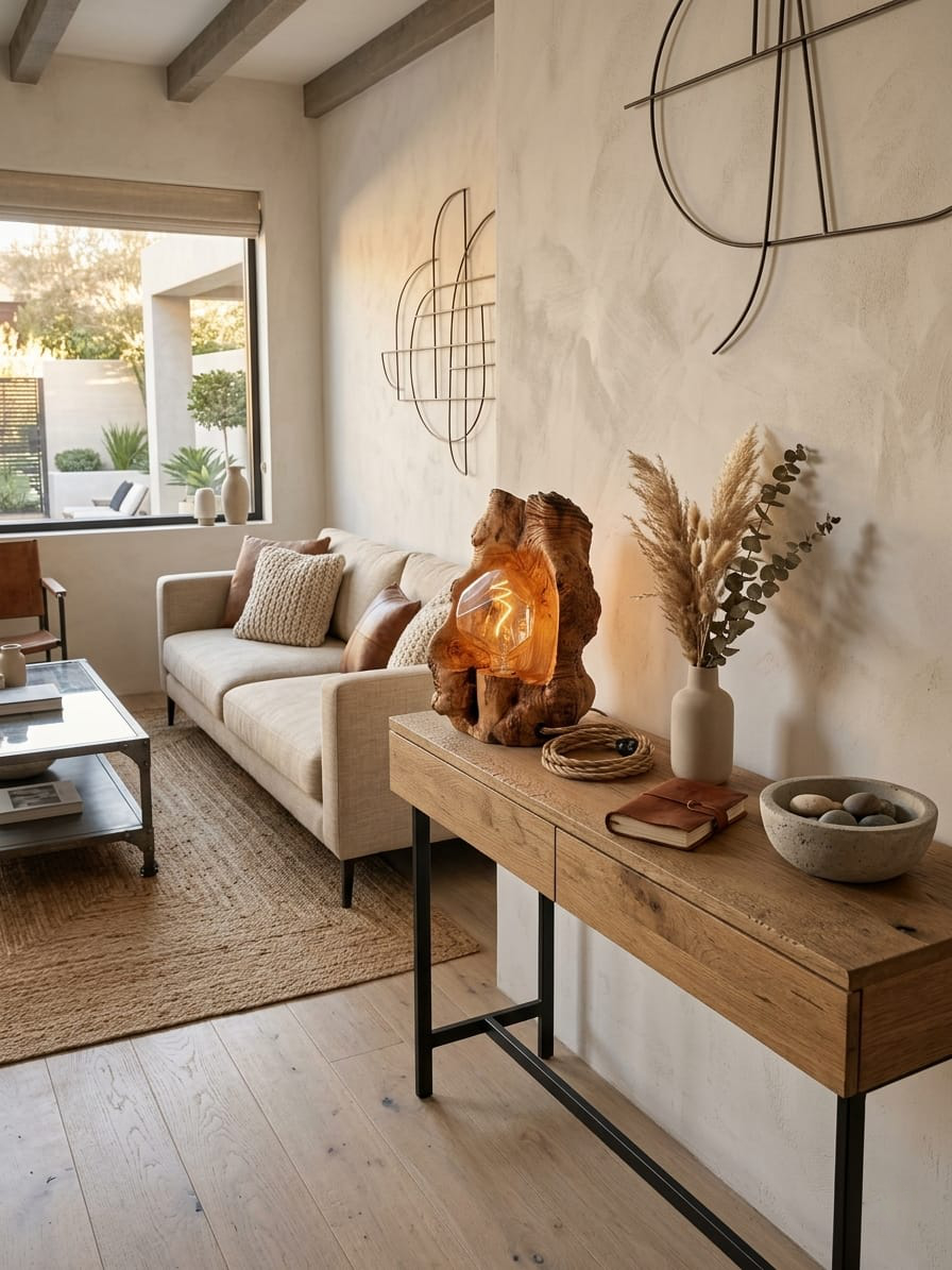 - La lámpara transmite una sensación de equilibrio entre naturaleza y diseño contemporáneo, ideal para espacios minimalistas, rústicos, o estilos wabi-sabi.