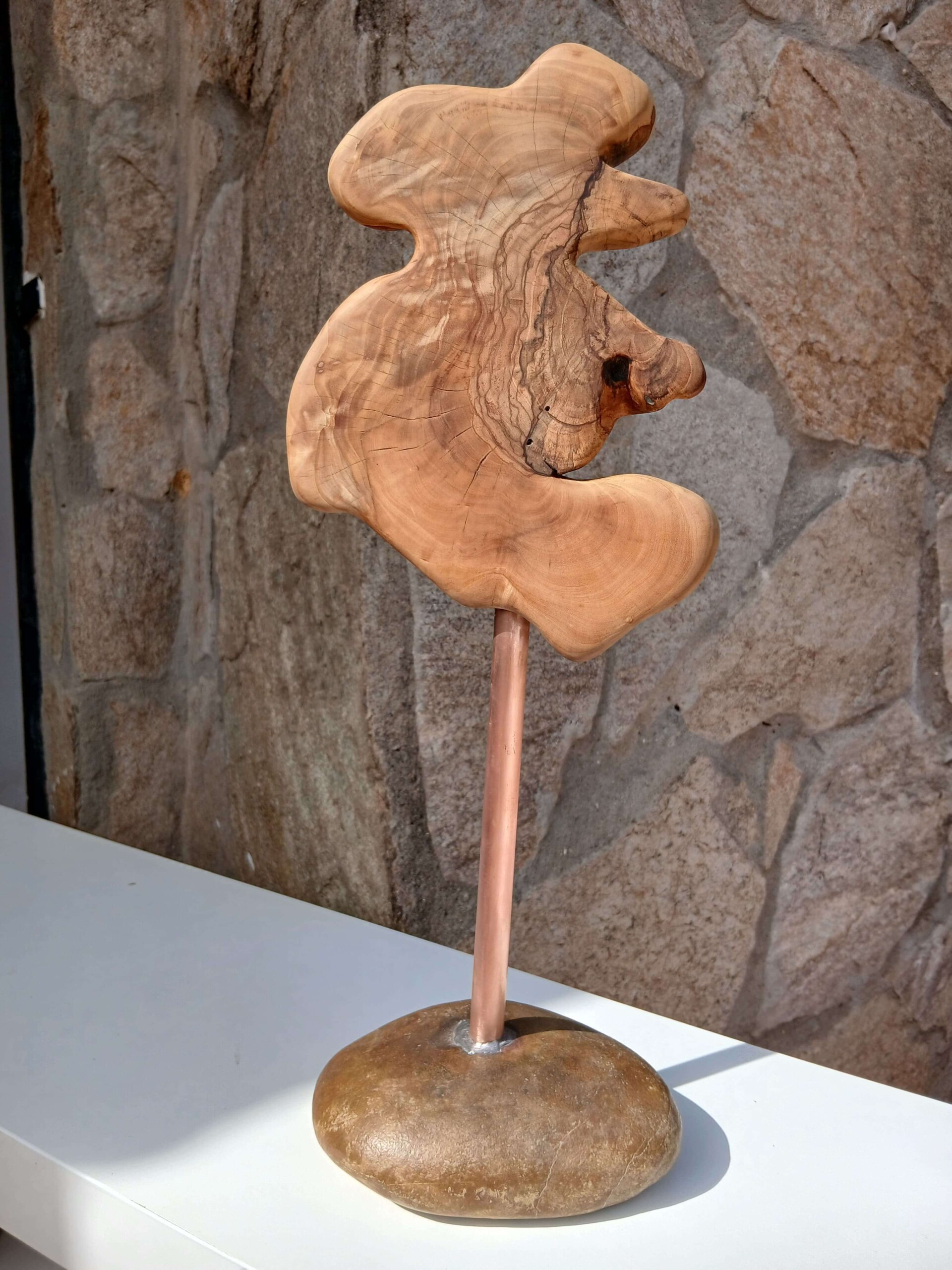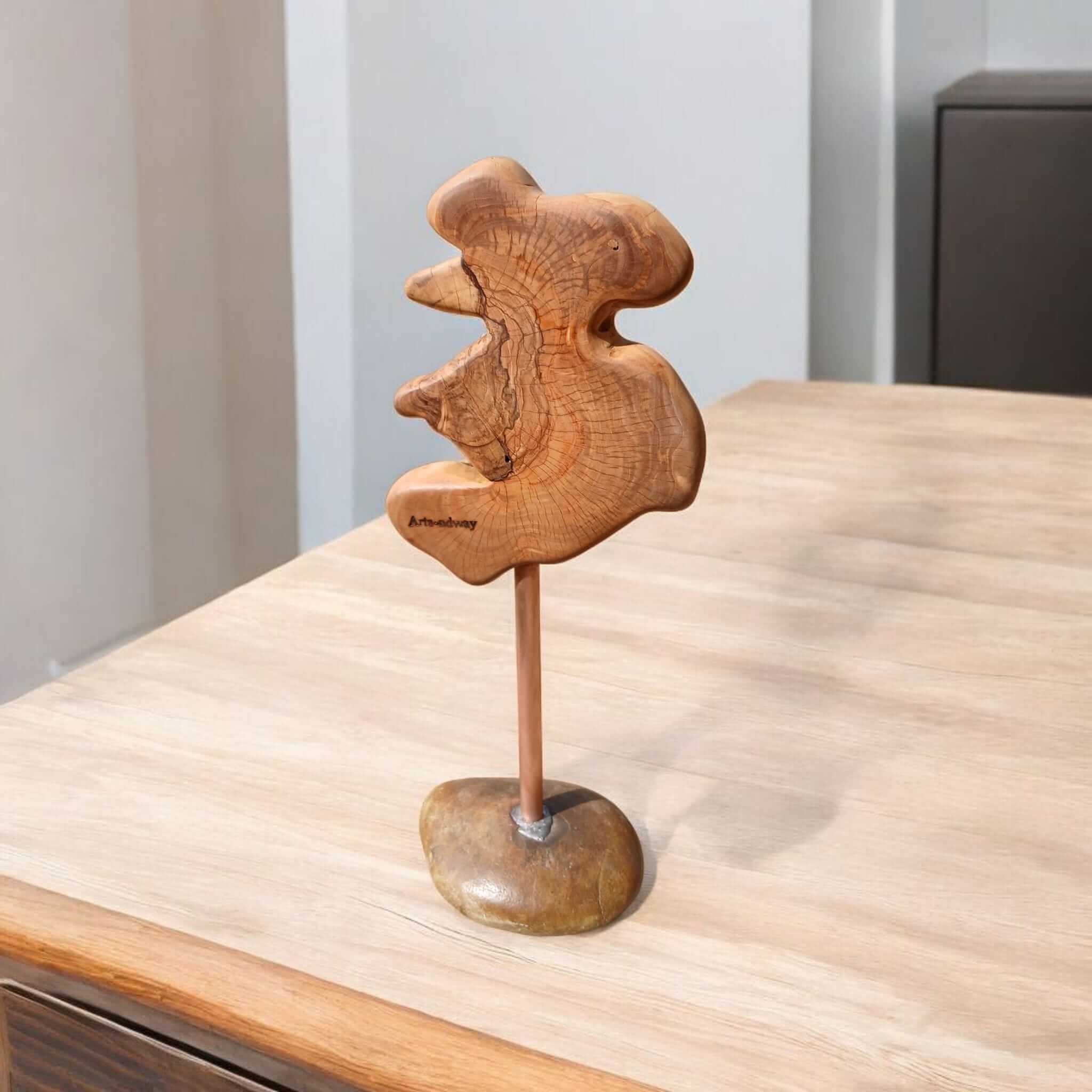 Figura de madera de olivo con la forma natural que tenia en el árbol.