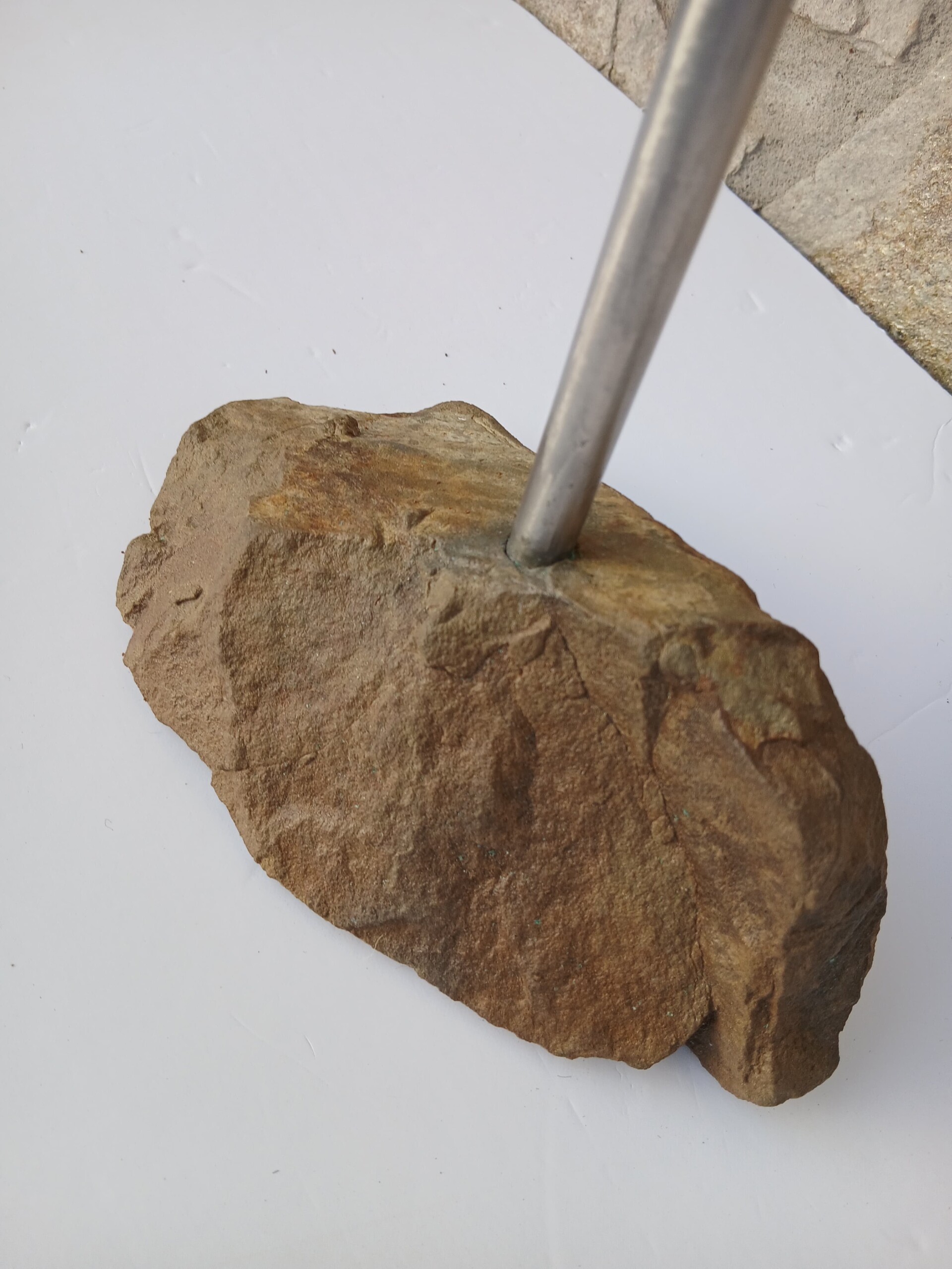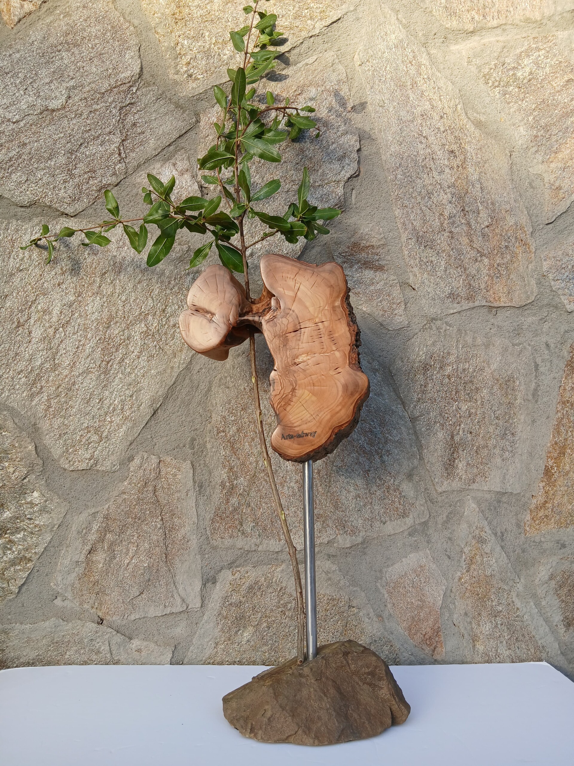 - La pieza se alza sobre una base de roca que le da estabilidad y un aire de escultura contemporánea.