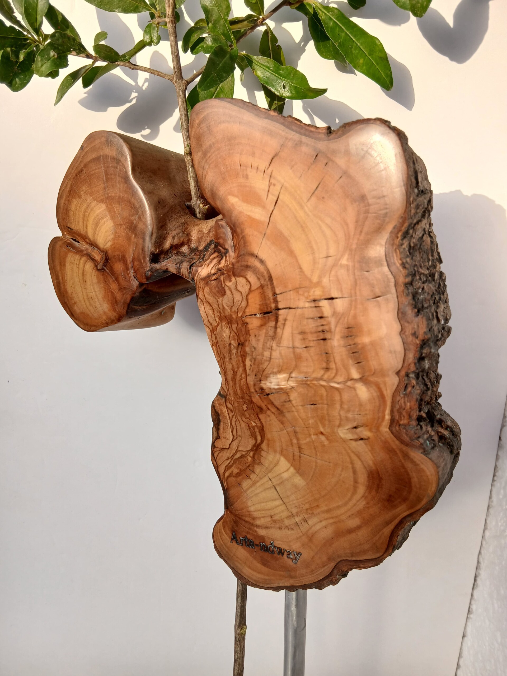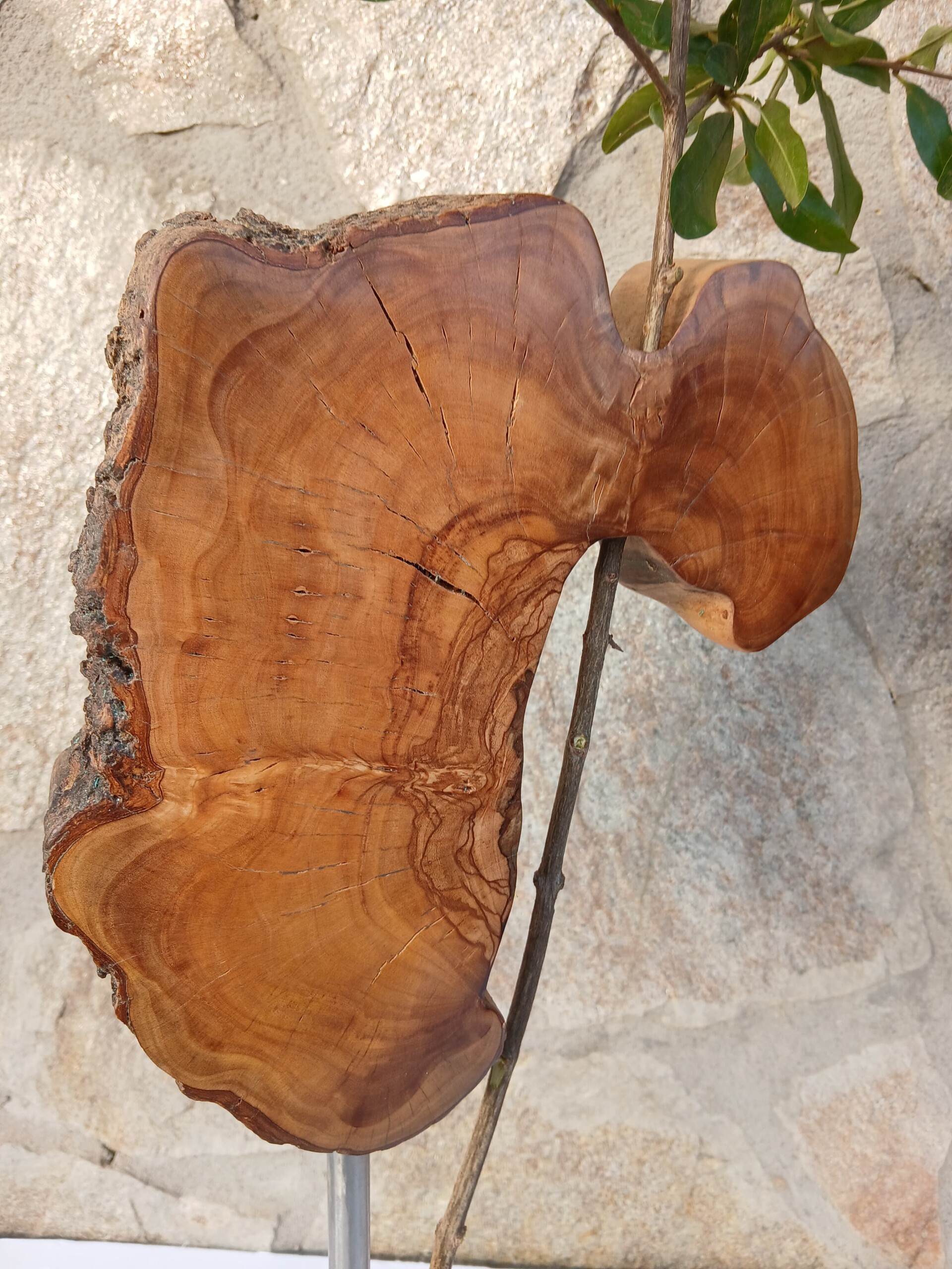 - Es una pieza que combina rusticidad y modernidad, homenajeando al olivo como símbolo de fuerza, longevidad y armonía.