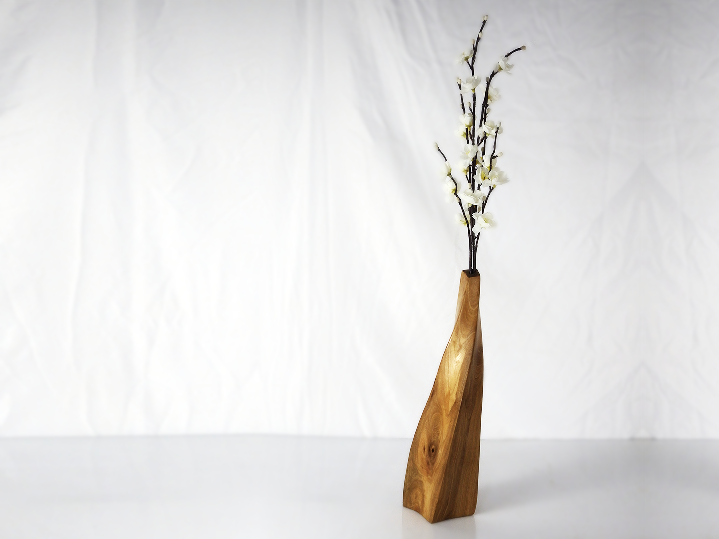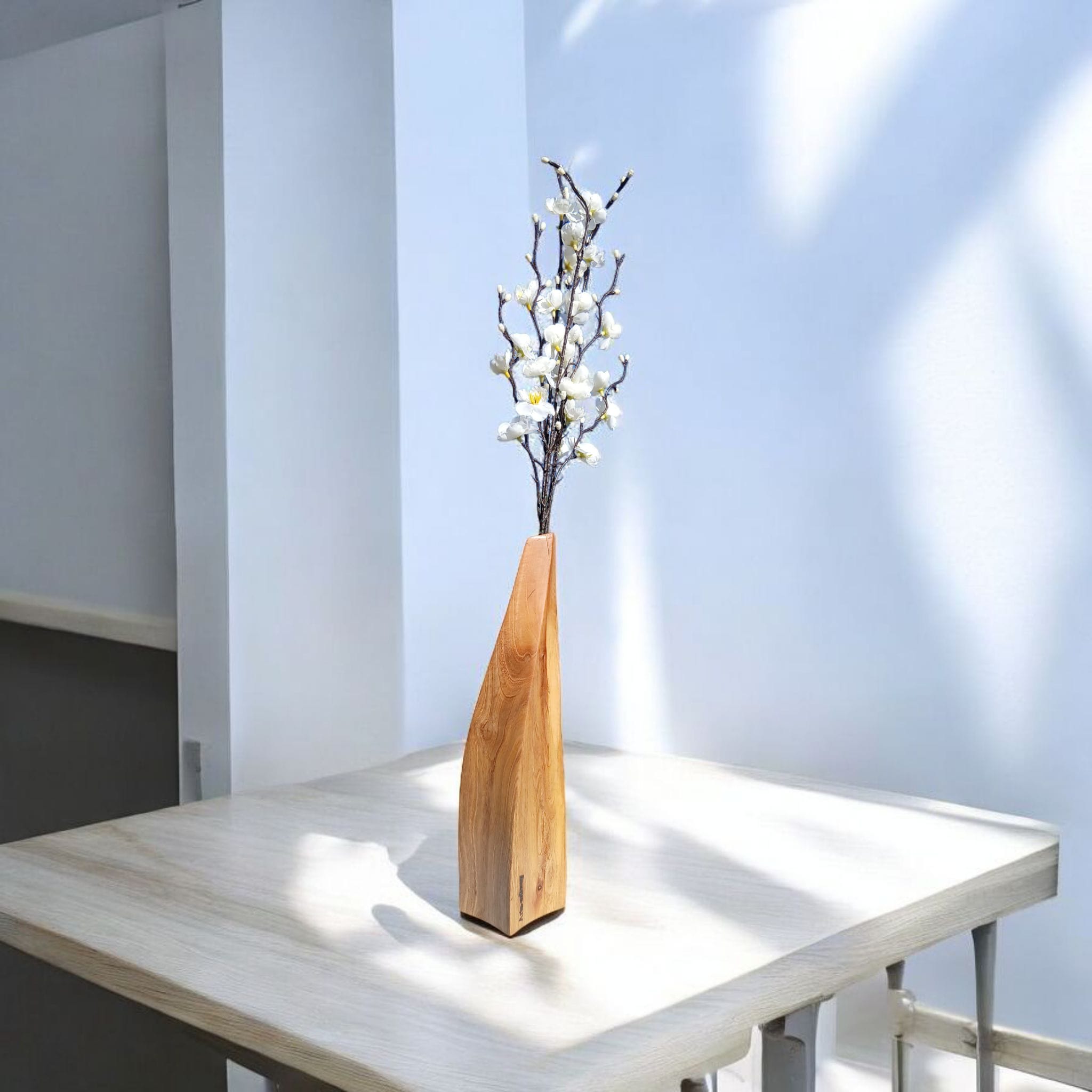 Un jarrón que tiene un toque minimalista con forma estilizada con líneas que no buscan la perfección geométrica sino el encanto de la asimetría elegante.