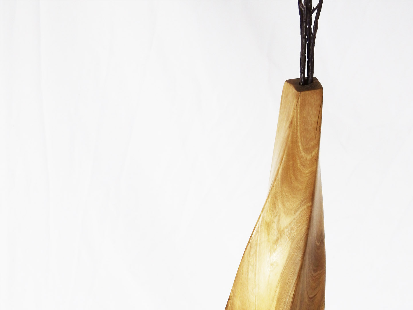 - La madera exhibe vetas cálidas y de color ámbar que serpentean por su superficie.