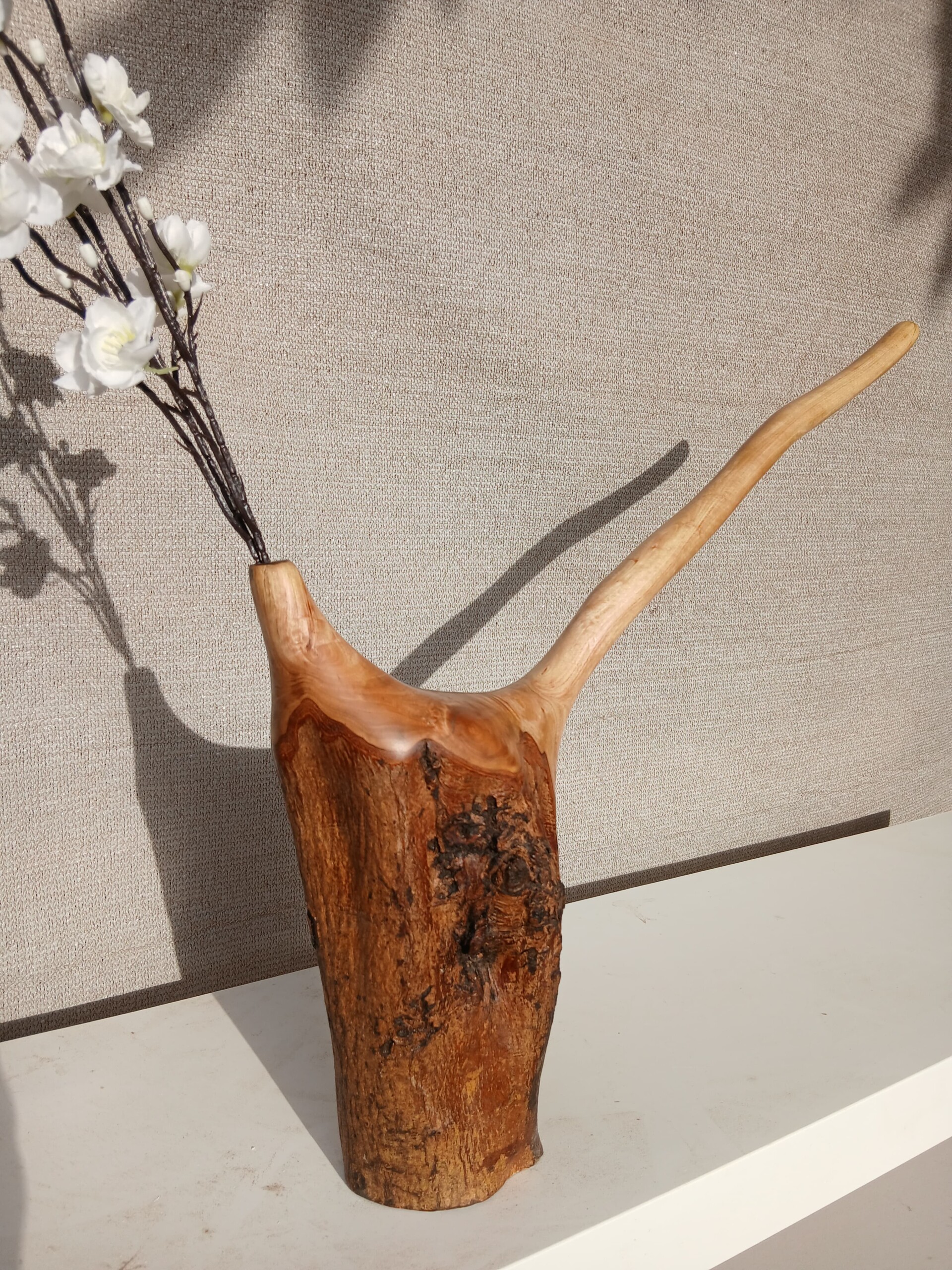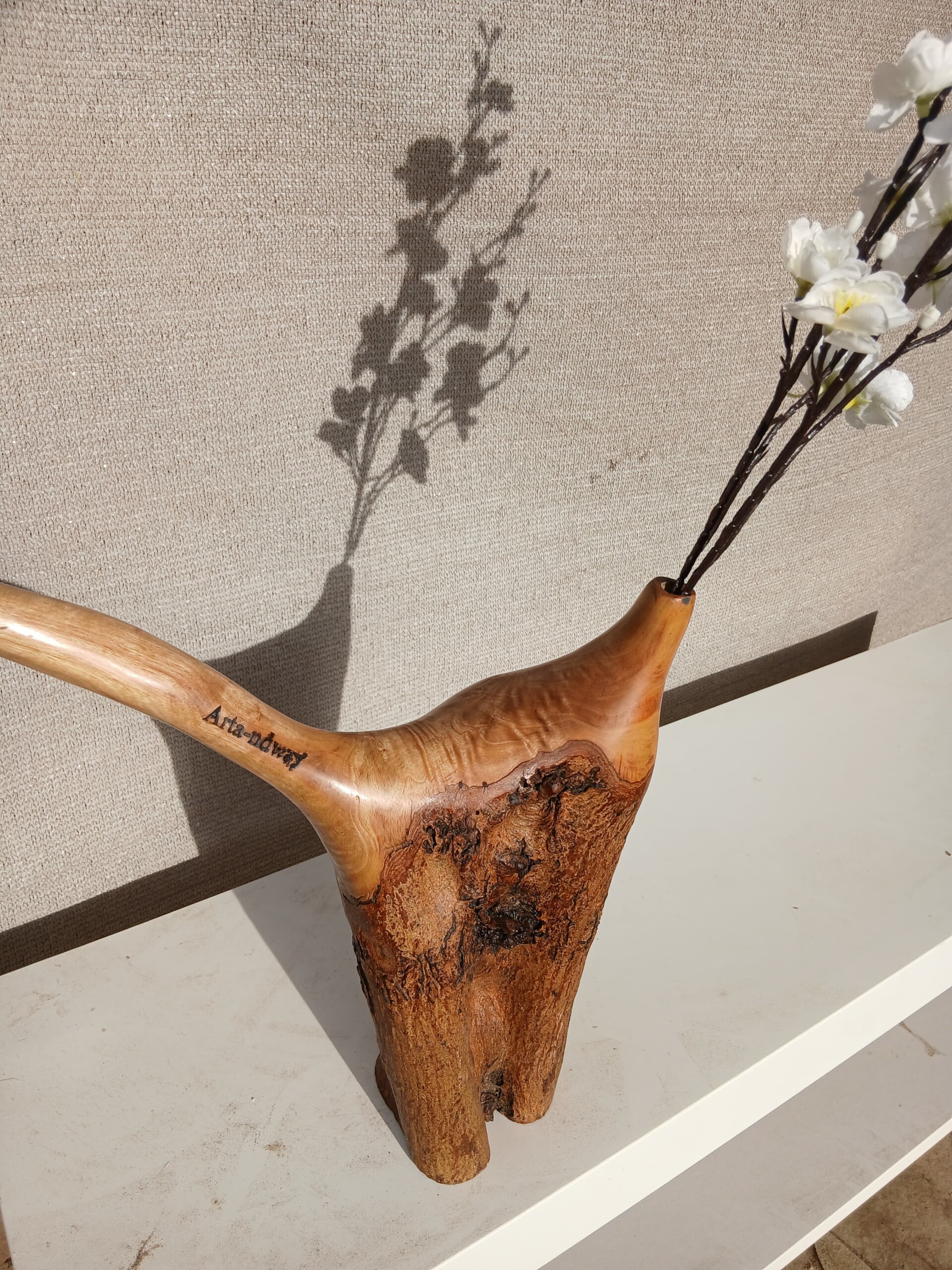 - Este jarrón de madera de olivo es una pequeña escultura nacida de la naturaleza que une rusticidad y elegancia.